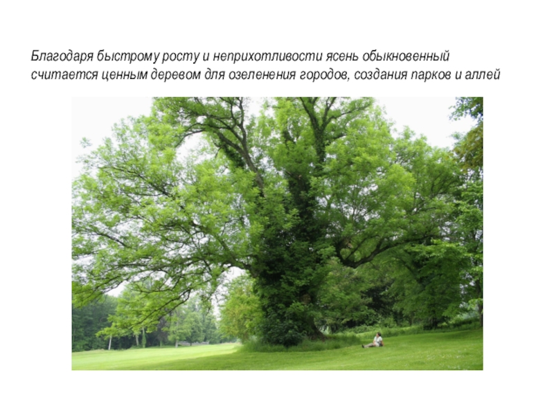 Слайд 6 Благодаря быстрому росту и неприхотливости ясень обыкновенный считается ценным деревом для