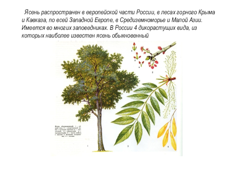 Слайд 5 Ясень распространен в европейской части России, в лесах горного Крыма и