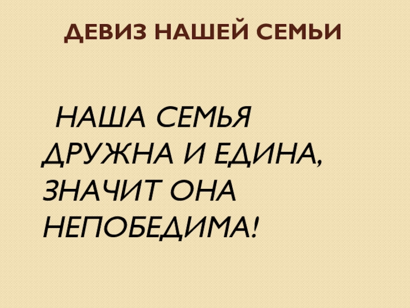 ДЕВИЗ НАШЕЙ СЕМЬИ  НАША СЕМЬЯ ДРУЖНА И ЕДИНА, ЗНАЧИТ ОНА НЕПОБЕДИМА!