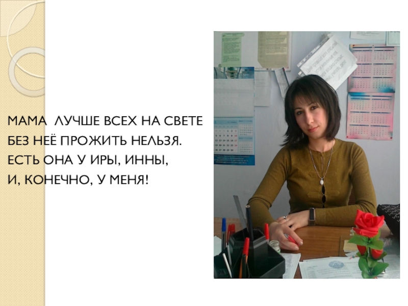 МАМА ЛУЧШЕ ВСЕХ НА СВЕТЕБЕЗ НЕЁ ПРОЖИТЬ НЕЛЬЗЯ.ЕСТЬ ОНА У ИРЫ, ИННЫ,И, КОНЕЧНО, У МЕНЯ!