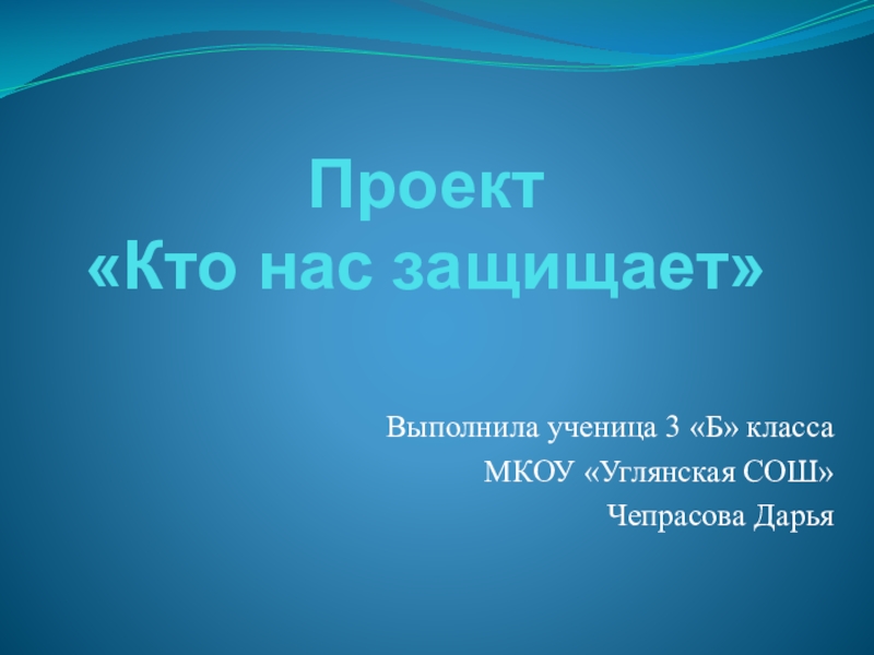 Проект  «Кто нас защищает»Выполнила ученица 3 «Б» класса МКОУ «Углянская СОШ» Чепрасова Дарья