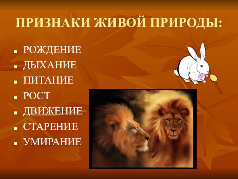 Слайд 3ПРИЗНАКИ ЖИВОЙ ПРИРОДЫ:
