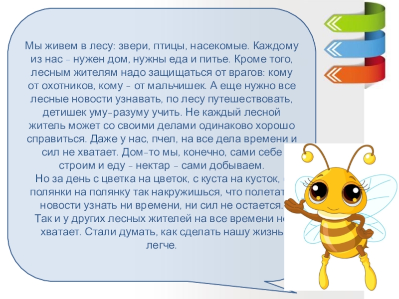 Так и у других лесных жителей на все времени не хватает. Стали думать, как сделать нашу жизнь легче.