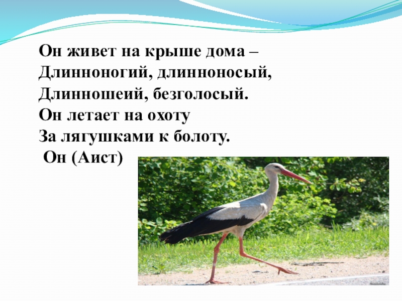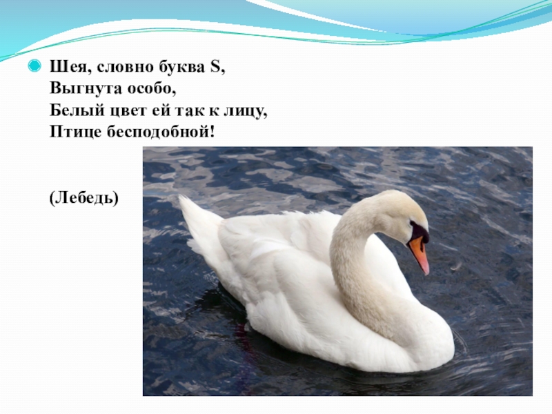 Слайд 14 Лебедь — изящная перелётная птица, улетающая в Африку в октябре