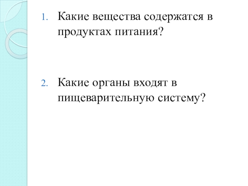 Какие вещества содержатся в продуктах питания?Какие органы входят в пищеварительную систему?