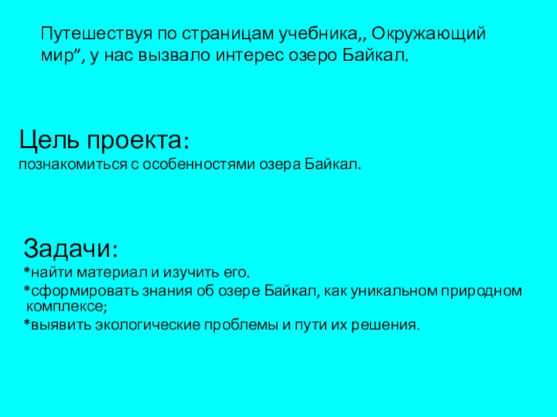 *сформировать знания об озере Байкал, как уникальном природном комплексе;