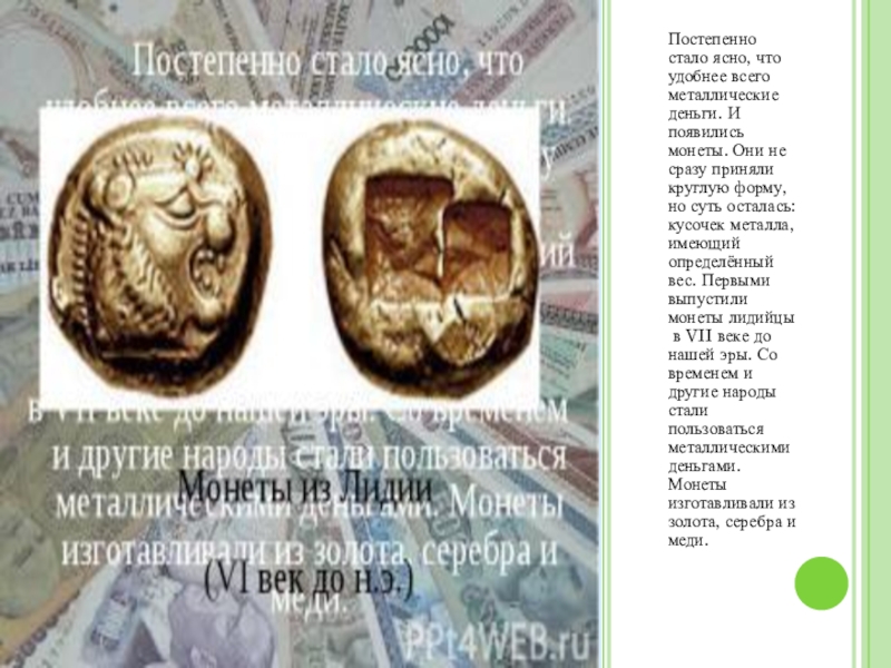 ПЕРВЫЕ ДЕНЬГИМеталлические деньгиБумажные деньги