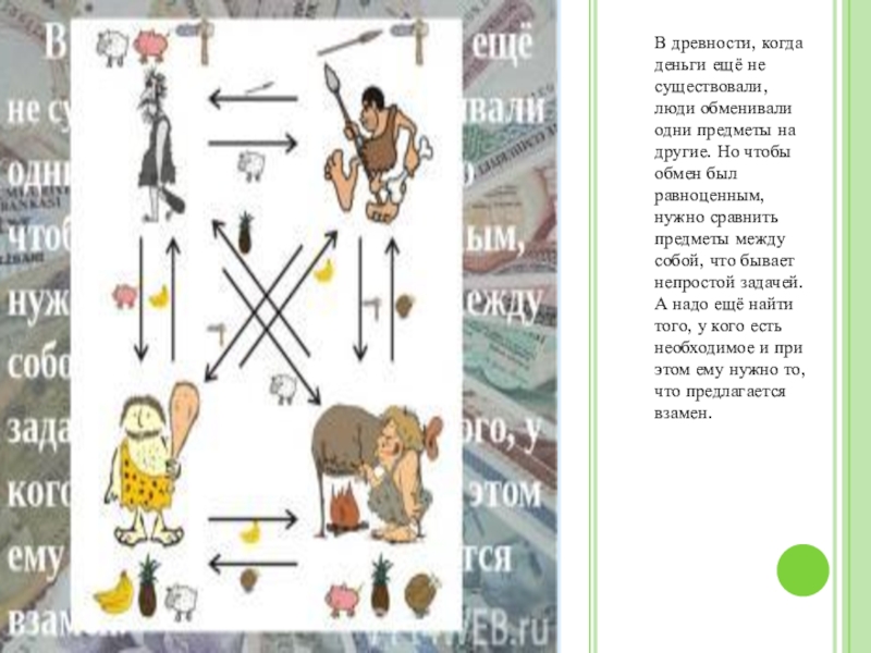 В древности, когда деньги ещё не существовали, люди обменивали одни предметы