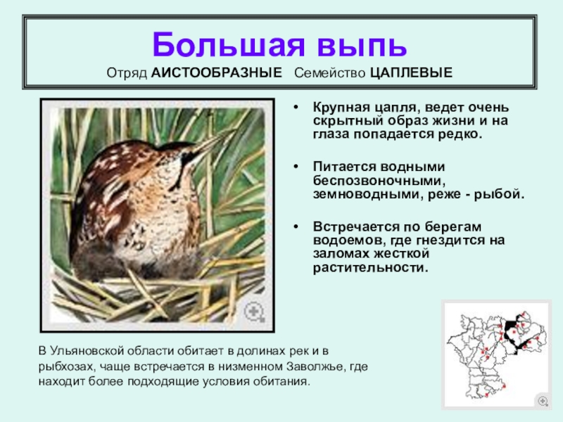 В Ульяновской области обитает в долинах рек и в рыбхозах, чаще встречается в низменном Заволжье, где находит более подходящие условия обитания.