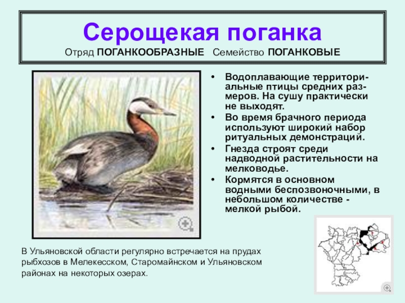 Гнездятся они на крупных водоемах в открытой местности: на пруду у с. Языково Тереньгульского района, на озерах у пос. Чердаклы, практически во всех рыбхозах, на заросших заливах Куйбышевского водохранилища и даже на свияжском карьере на окраине Ульяновска.