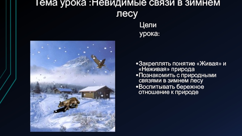 Тема урока :Невидимые связи в зимнем лесу Цели урока: