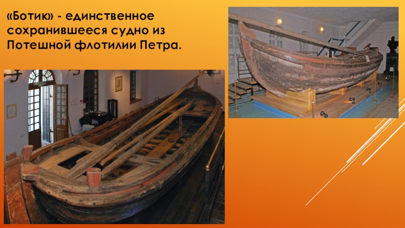 Слайд 4«Ботик» - единственное сохранившееся судно из Потешной флотилии Петра.