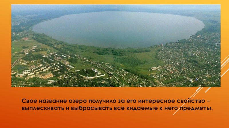 Слайд 6Свое название озеро получило за его интересное свойство – выплескивать и