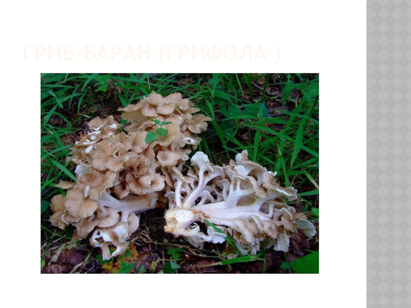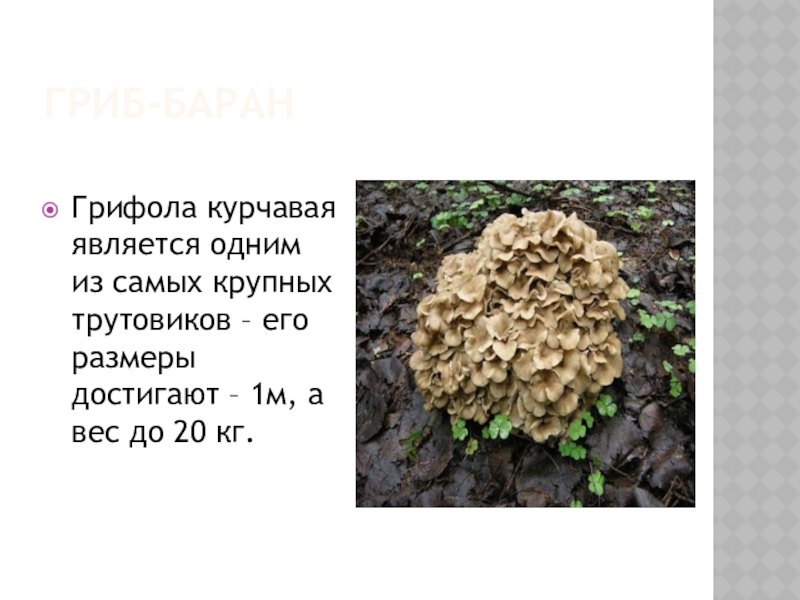 Гриб-баранГрифола курчавая является одним из самых крупных трутовиков – его размеры достигают – 1м, а вес до