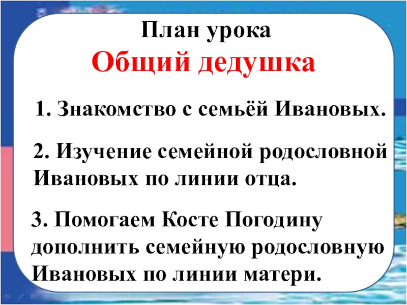 3. Помогаем Косте Погодину дополнить семейную родословную Ивановых по линии матери.