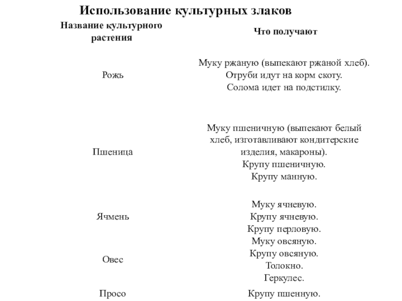 Слайд 6Использование культурных злаков