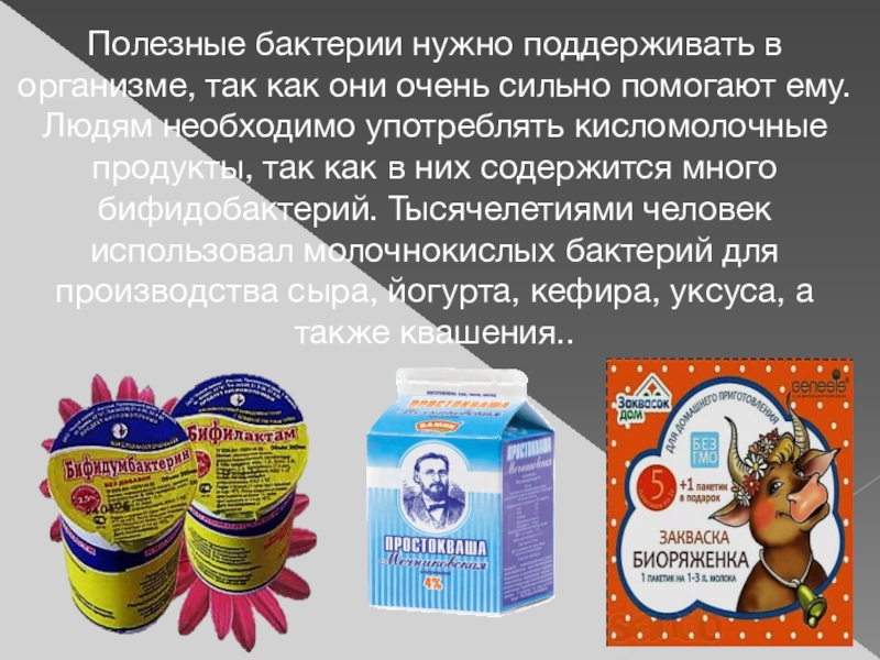 Полезные бактерии нужно поддерживать в организме, так как они очень сильно помогают ему. Людям необходимо употреблять кисломолочные