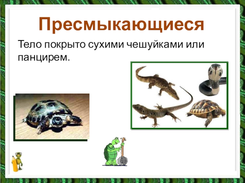 Пресмыкающиеся Тело покрыто сухими чешуйками или панцирем.