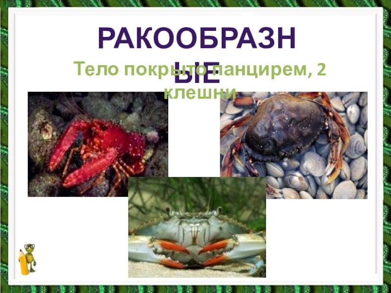 Ракообразные Тело покрыто панцирем, 2 клешни