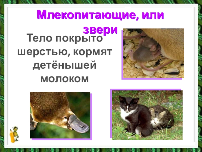 Млекопитающие, или звери Тело покрыто шерстью, кормят детёнышей молоком