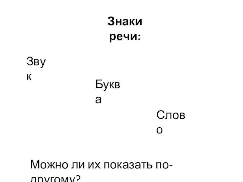 Знаки речи:ЗвукБукваСловоМожно ли их показать по-другому?