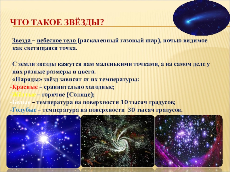 Звезда – небесное тело (раскаленный газовый шар), ночью видимое