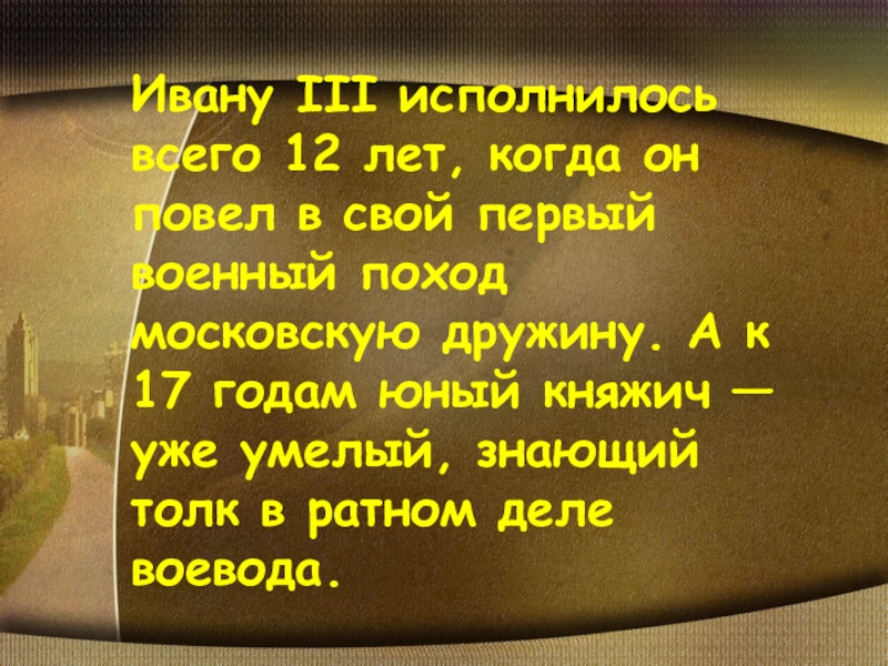 Слайд 8Ивану III исполнилось всего 12 лет, когда он повел в свой