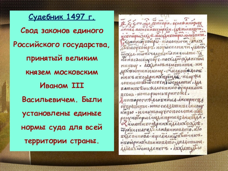 Васильевичем. Были установлены единые нормы суда для всей территории страны.