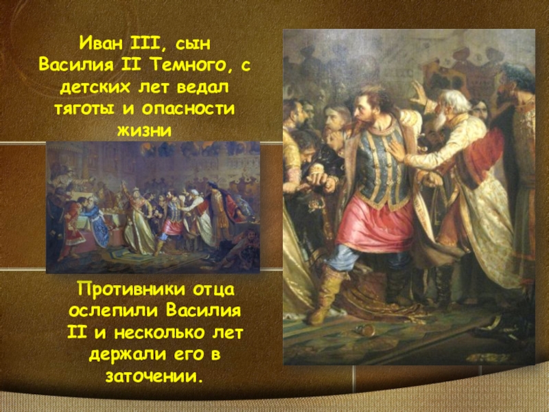 Слайд 4Иван III, сын Василия II Темного, с детских лет ведал тяготы
