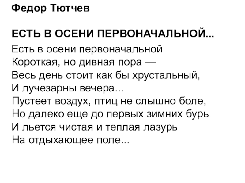 ЕСТЬ В ОСЕНИ ПЕРВОНАЧАЛЬНОЙ...