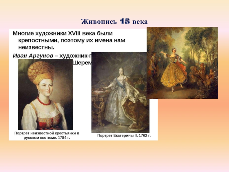 Презентация, доклад по окружающему миру на тему Искусство России 18 века