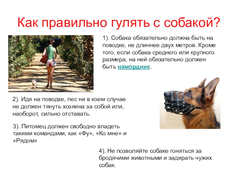 3). Питомец должен свободно владеть такими командами, как «Фу», «Ко мне» и «Рядом»