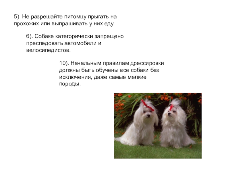 10). Начальным правилам дрессировки должны быть обучены все собаки без исключения, даже самые мелкие породы.