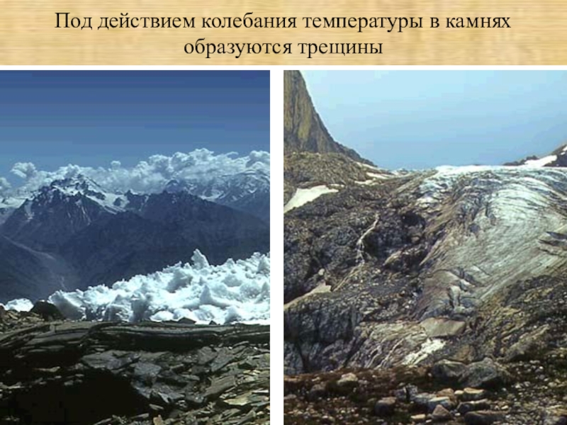 Слайд 5Под действием колебания температуры в камнях образуются трещины