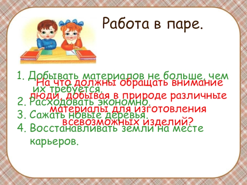 1. Добывать материалов не больше, чем