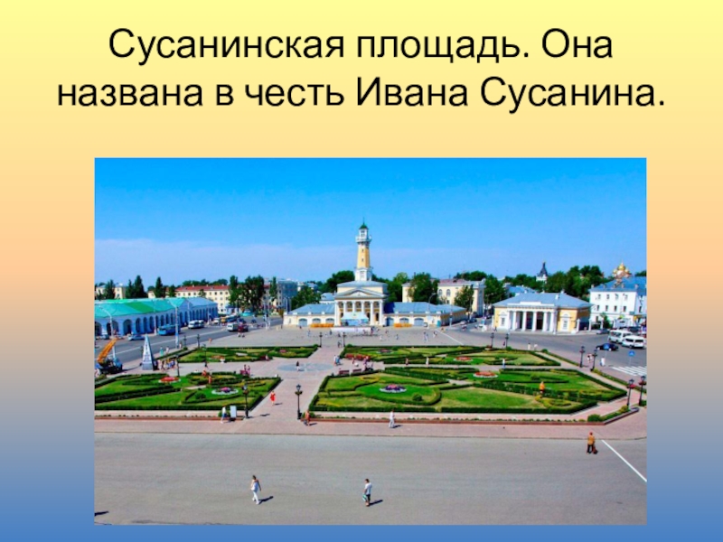 Слайд 6Сусанинская площадь. Она названа в честь Ивана Сусанина.