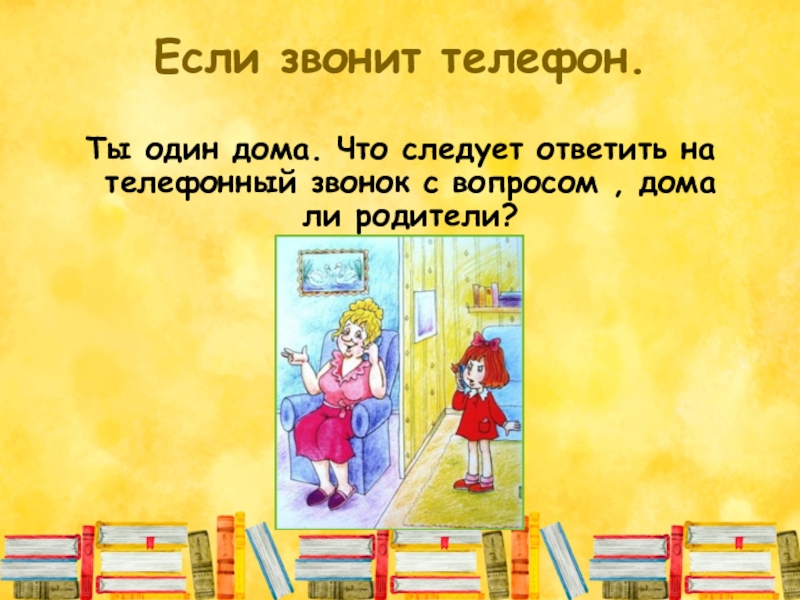 Если звонит телефон.Ты один дома. Что следует ответить на телефонный звонок с вопросом , дома ли родители?