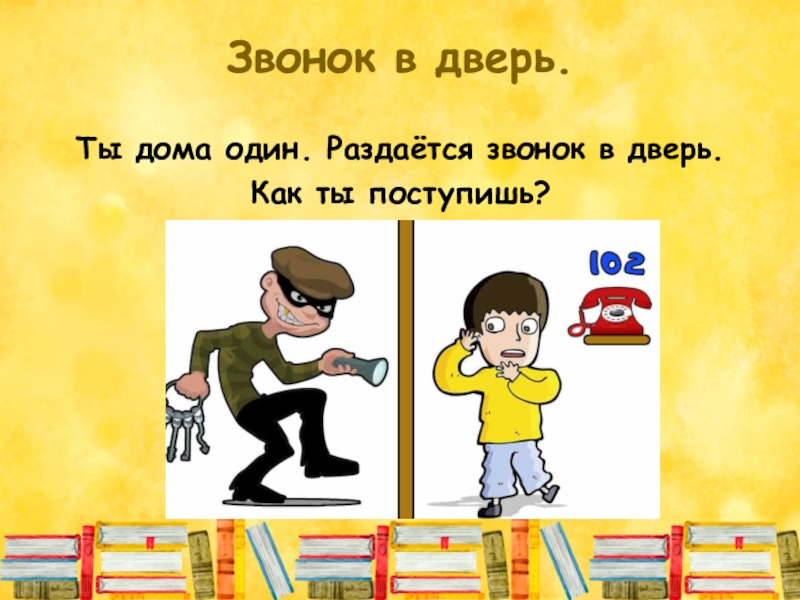 Звонок в дверь.Ты дома один. Раздаётся звонок в дверь.Как ты поступишь?