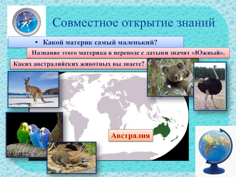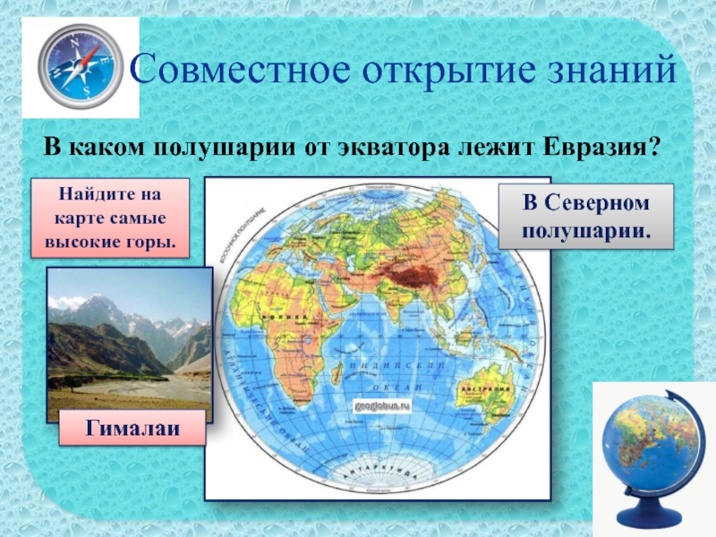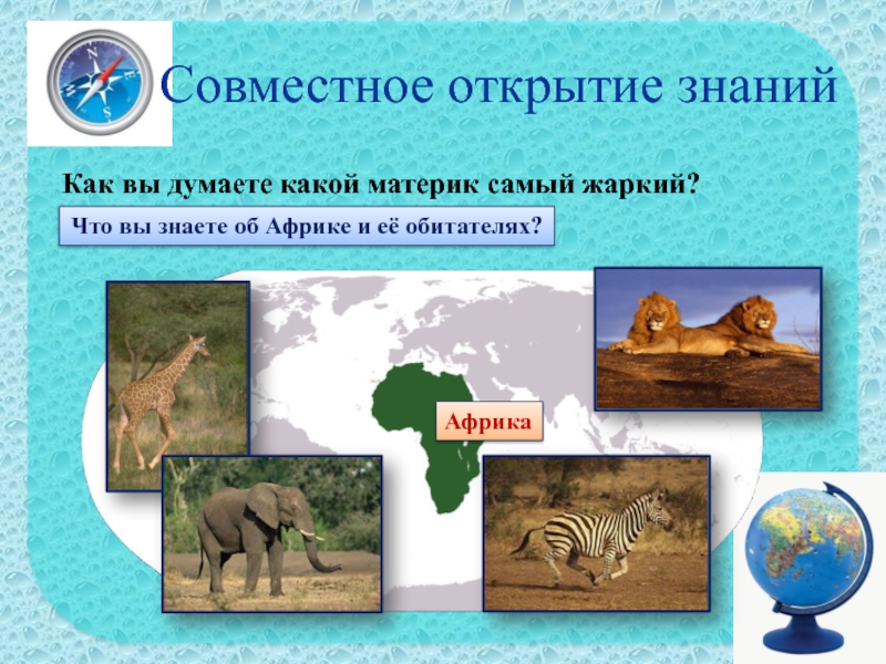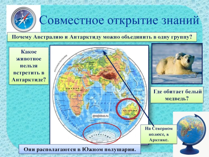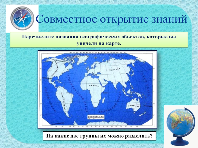 Я знаю, что на Земле 6 частей света и 4 океана. Мы живём в Европе.