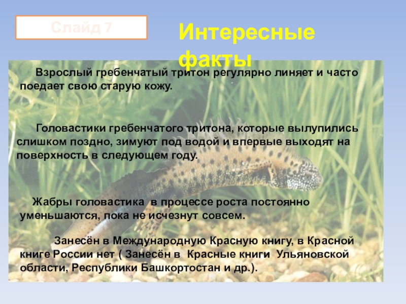 Взрослый гребенчатый тритон регулярно линяет и часто поедает свою старую кожу.