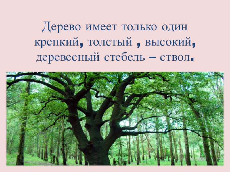 Слайд 4Дерево имеет только один крепкий, толстый , высокий, деревесный стебель –