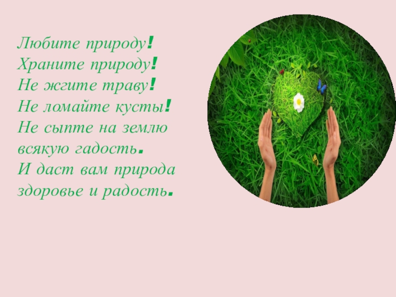 Любите природу! Храните природу! Не жгите траву! Не ломайте кусты!  Не