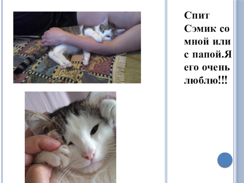 Слайд 22Спит Сэмик со мной или с папой.Я его очень люблю!!!