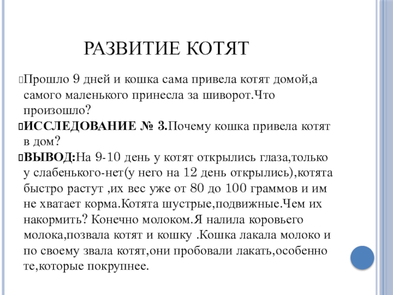 ИССЛЕДОВАНИЕ № 3.Почему кошка привела котят в дом?