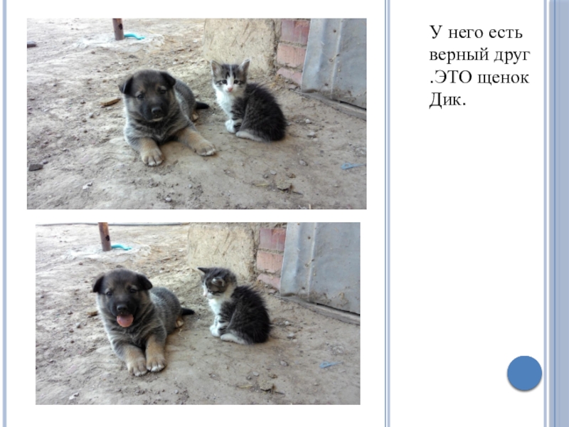 Слайд 19У него есть верный друг .ЭТО щенок Дик.