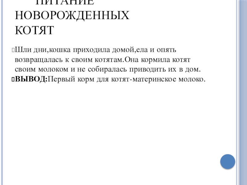 ВЫВОД:Первый корм для котят-материнское молоко.