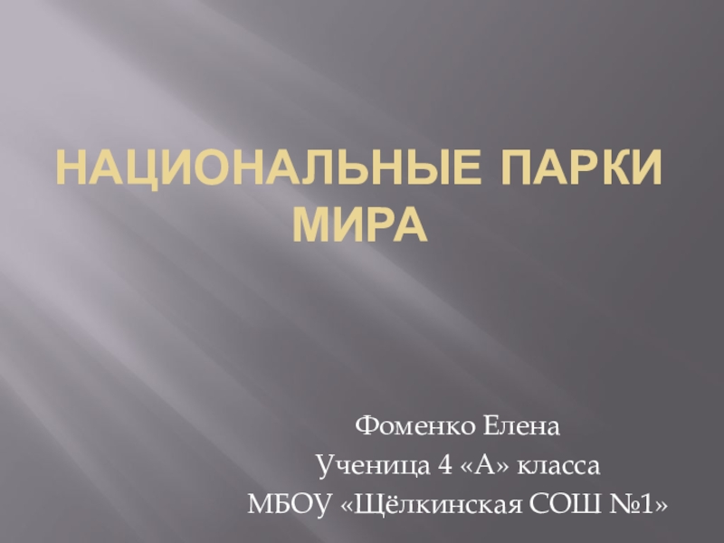 Национальные парки мираФоменко ЕленаУченица 4 «А» классаМБОУ «Щёлкинская СОШ №1»