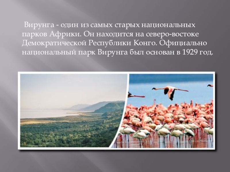 Слайд 4 Вирунга - один из самых старых национальных парков Африки. Он находится