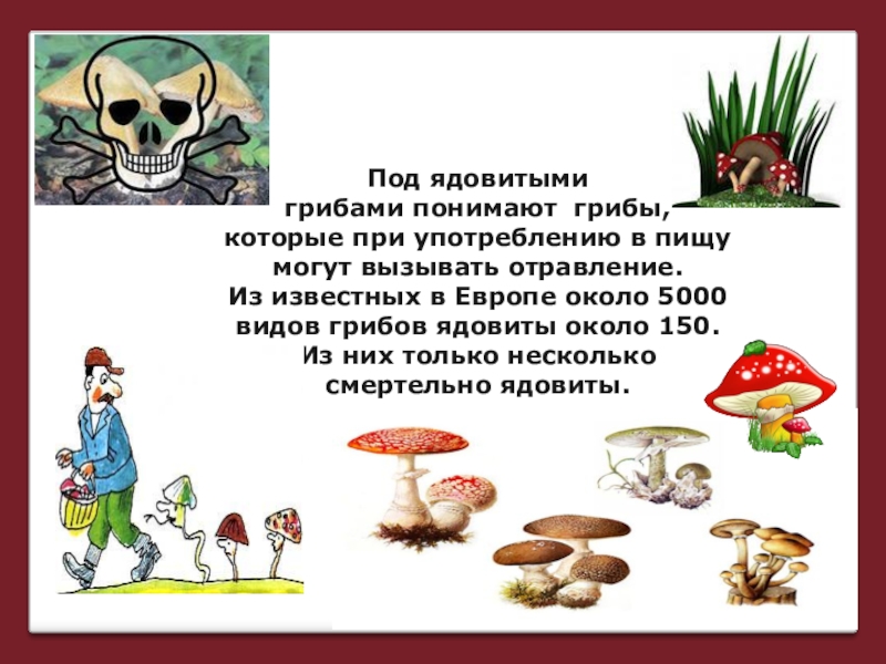Слайд 2Под ядовитыми грибами понимают грибы, которые при употреблению в пищу могут вызывать отравление.
