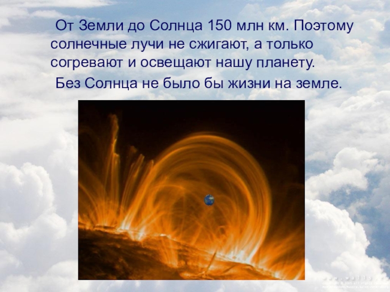 Слайд 7 От Земли до Солнца 150 млн км. Поэтому солнечные лучи не